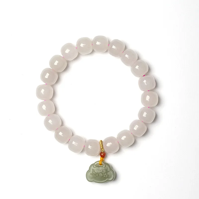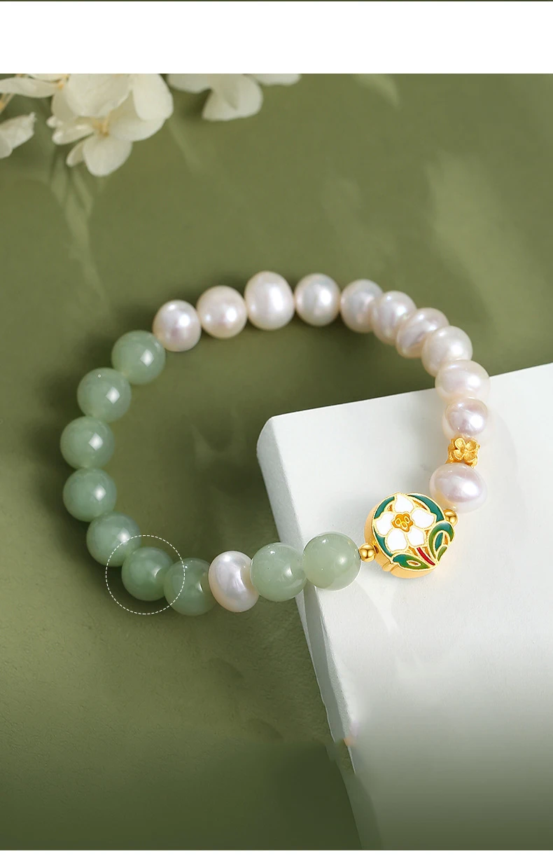 This item features natural white jade design.Wearing it expresses kindness and chastity in life. This item is plated with rose gold and polished with environmental and advanced technology. Wearing it shows your personality definitely and makes you standout at any occasion.